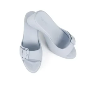 – A single strap with adjustable buckle – Non-slip outsoles – Breathable insoles – Two inches of extra height