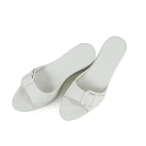– A single strap with adjustable buckle – Non-slip outsoles – Breathable insoles – Two inches of extra height